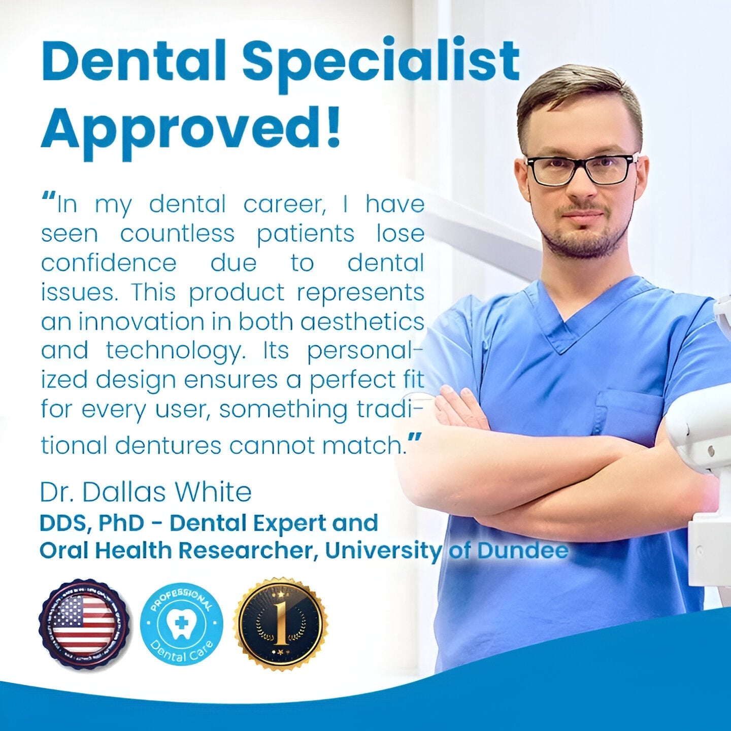 ComforaDent™ Snap-On Smile Set offers an easy, comfortable, and invisible solution for enhancing your smile, boosting confidence, and improving your daily interactions.